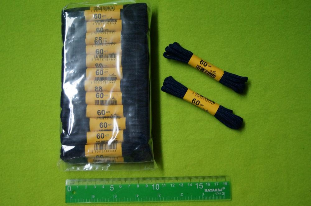 Sznurowadła 60 cm, okrągłe, granatowe, bawełniane op. 25 par