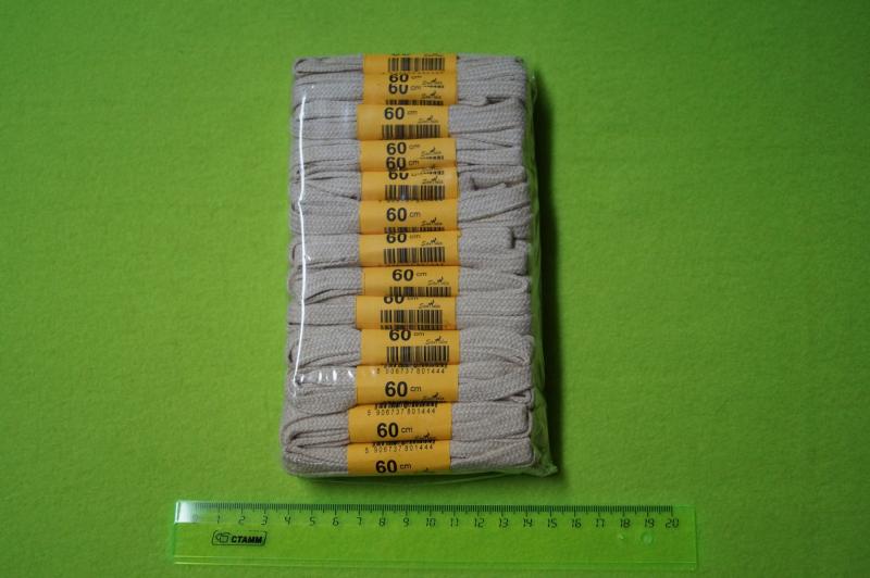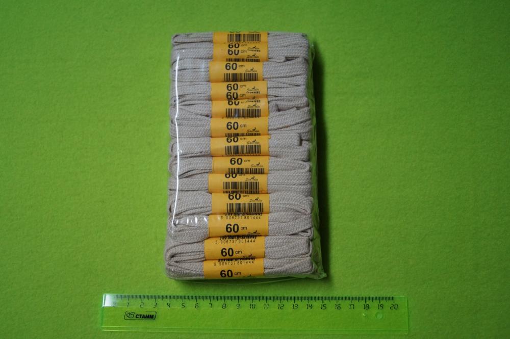 Sznurowadła 60 cm, płaskie, beż jasny, bawełniane, op. 25 par