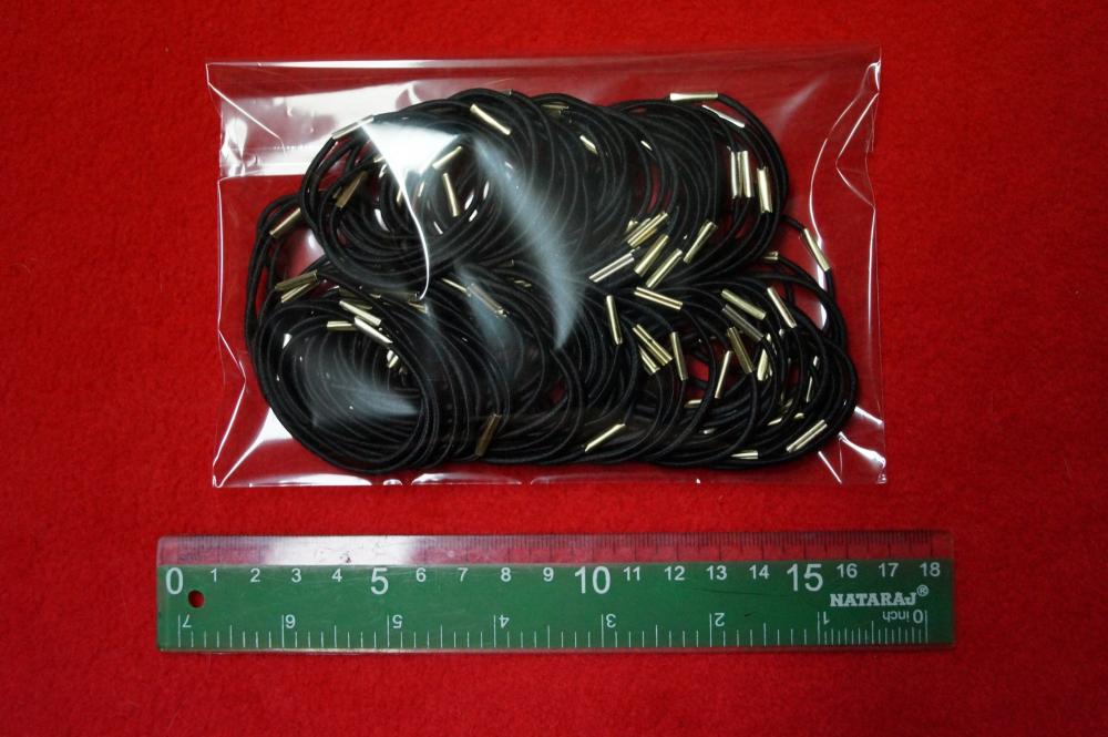 Gumki do włosów z metalowym łączeniem, czarne, cienkie.