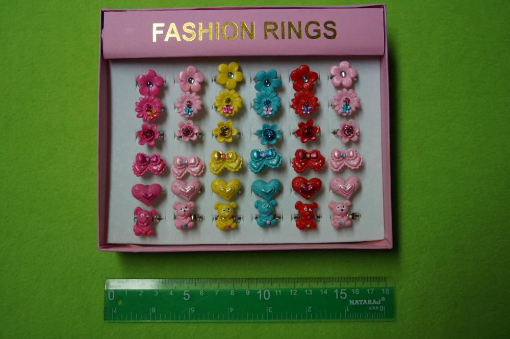 Pierścionki dziecięce, regulowane, mix wzorów i kolorów, op. 36 szt.