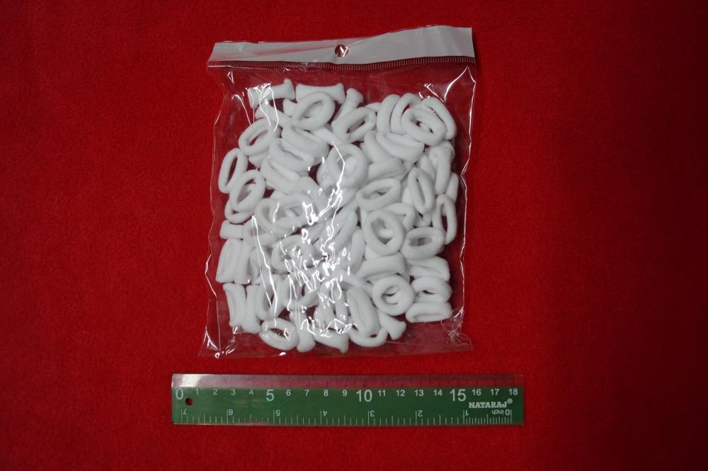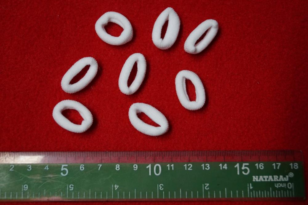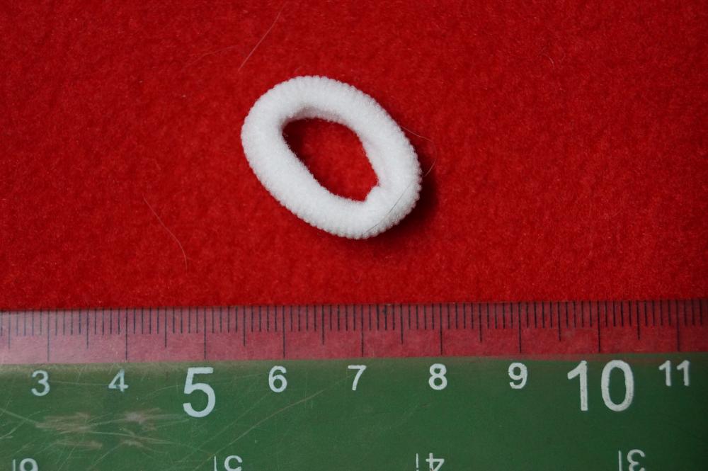 Białe małe gumki z wybielonej przędzy .