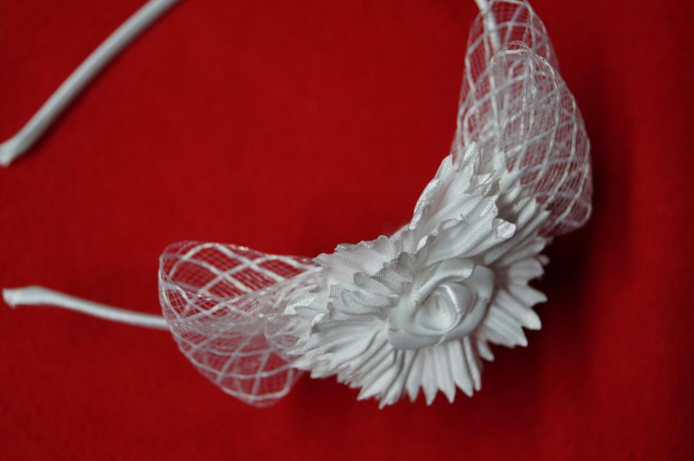 Metalowa biała opaska z piękną kokardą