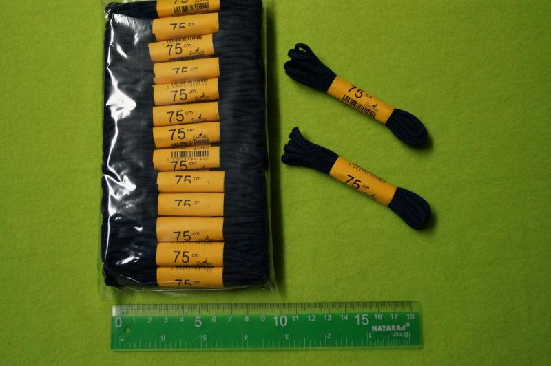Sznurowadła 75 cm, cienkie, granatowe, bawełniane op. 25 par