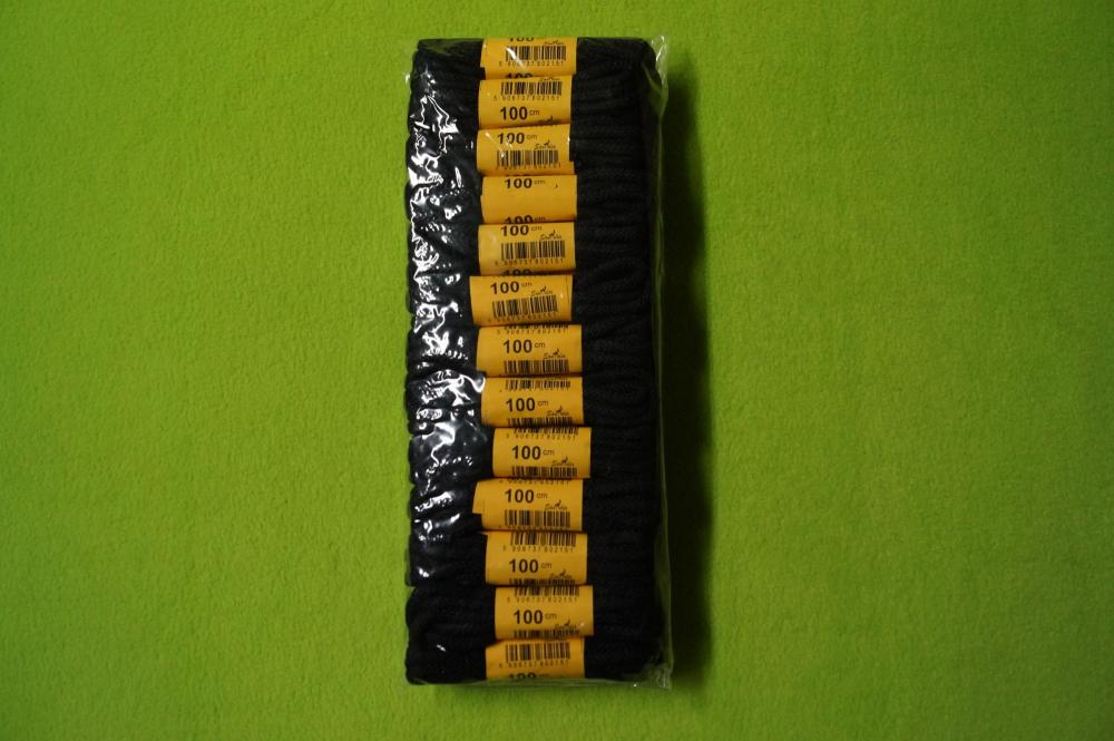Sznurowadła 100 cm, okrągłe, czarne, bawełniane op. 25 par