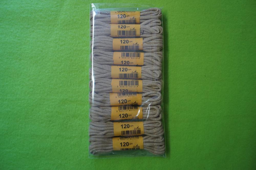 Sznurowadła 120 cm bawełniane beżowe, okrągłe op. 10 par