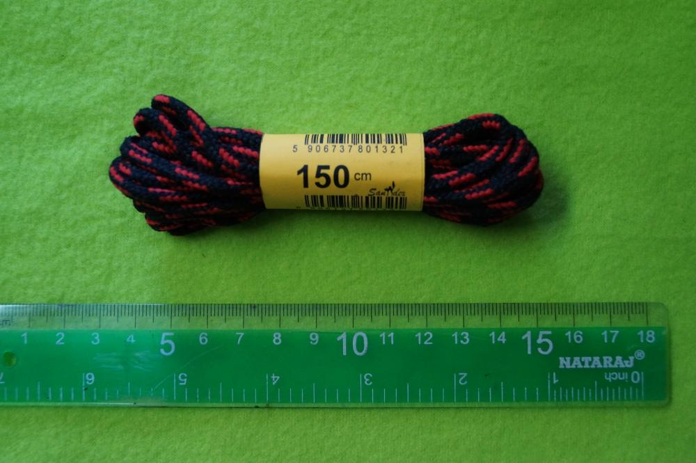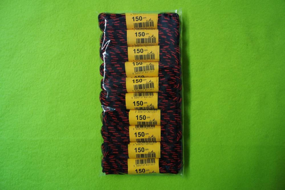 Sznurowadła 150 cm okrągłe [ciapki] czarno-czerwone, op. 10 par