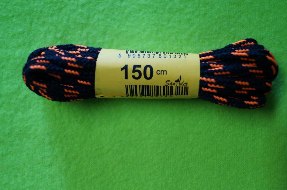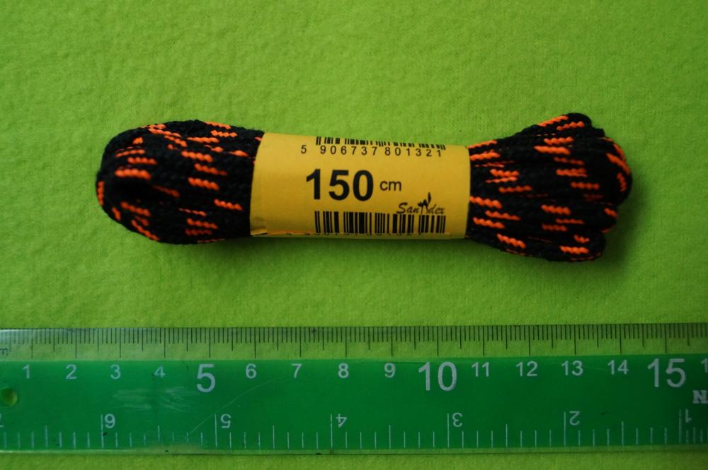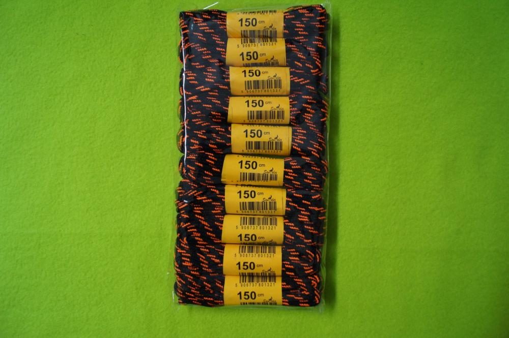 Sznurowadła 150 cm okrągłe [ciapki] czarno-pomarańczowe, op. 10 par