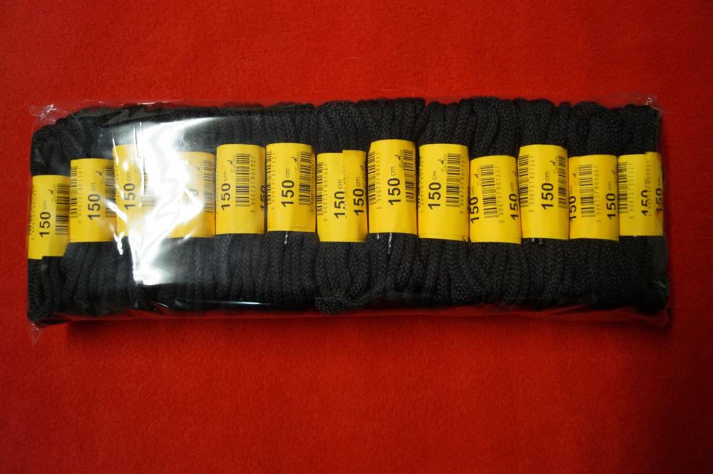Sznurowadła 150 cm, okrągłe, czarne, bawełniane op. 25 par