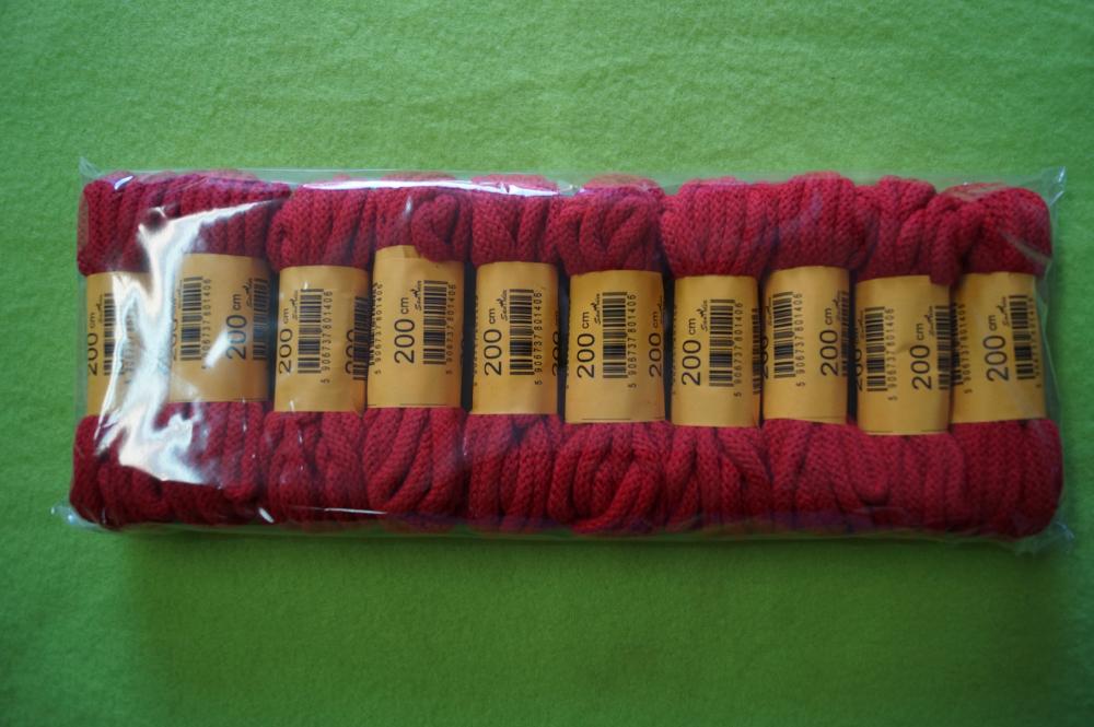 Sznurowadła 200 cm, okrągłe, czerwone , bawełniane, op. 10 par