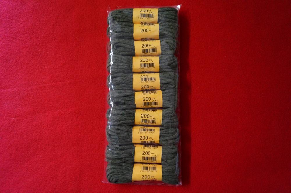 Sznurowadła 200 cm, okrągłe, zgniła zieleń (khaki),bawełniane op.10 par /1554/