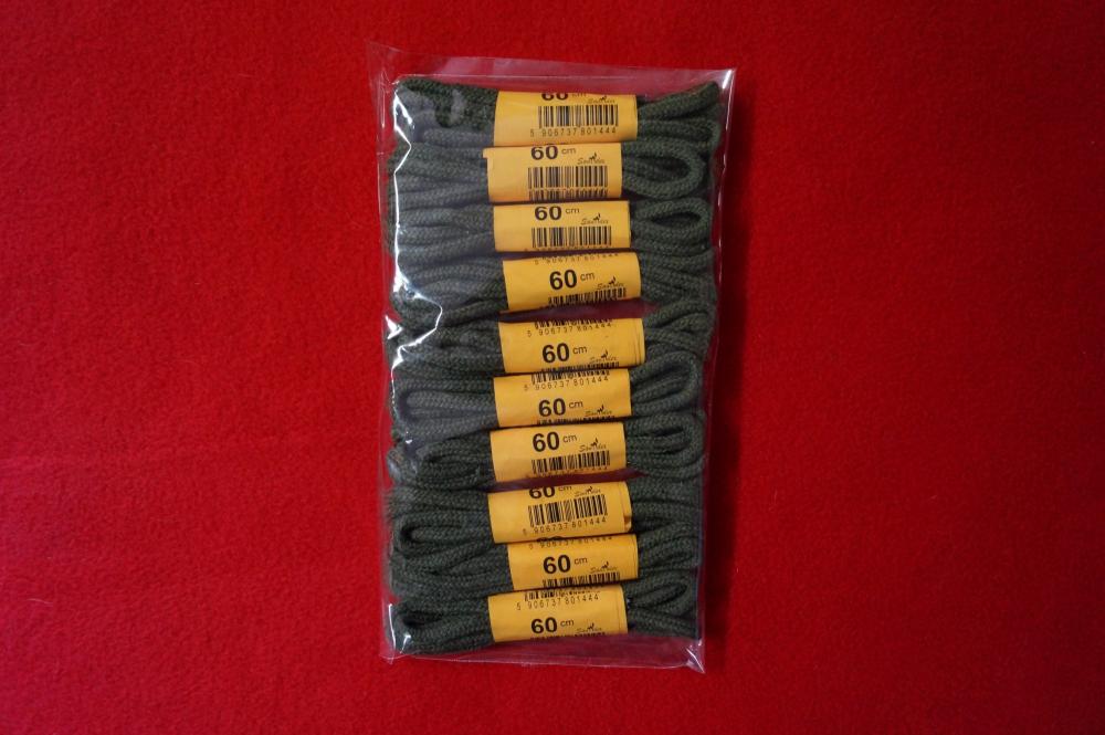 Sznurowadła 60 cm, okrągłe, bawełniane, zgniła zieleń /khaki/, op. 10 par /1557/