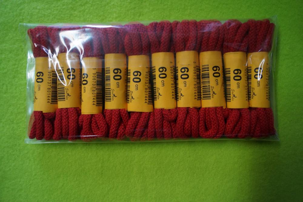 Sznurowadła 60 cm okrągłe czerwone, op. 10 par