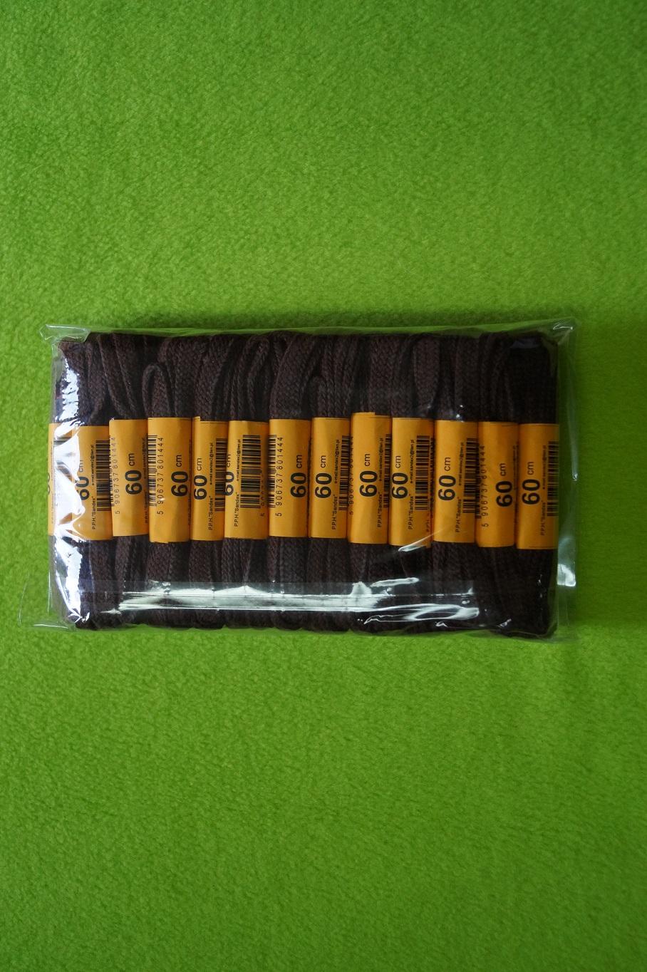Sznurowadła 60 cm, płaskie, brązowe, bawełniane op. 25 par