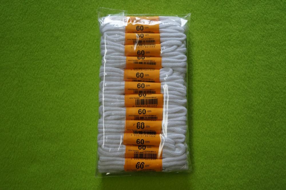 Sznurowadła 60 cm, okrągłe, białe, bawełniane op. 25 par