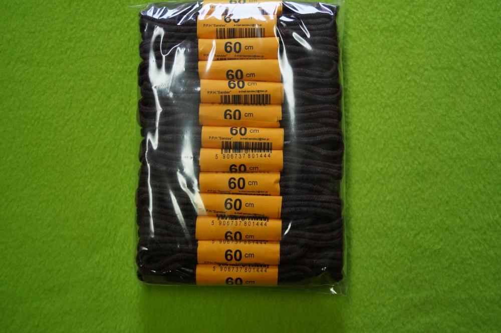 Sznurowadła 60 cm, cienkie, brązowe, bawełniane op. 25 par