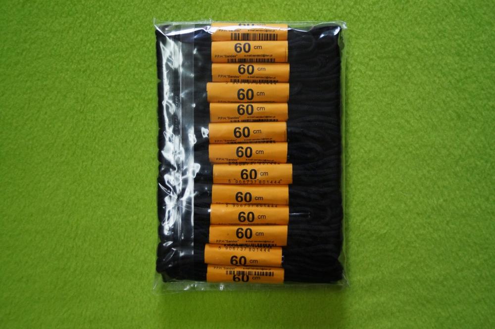Sznurowadła 60 cm, cienkie, czarne, bawełniane op. 25 par