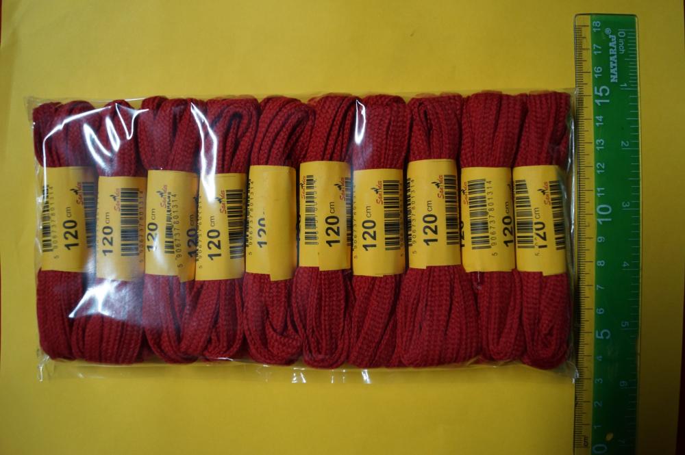 Sznurowadła 120 cm, czerwone płaskie, op. 10 par /1618/