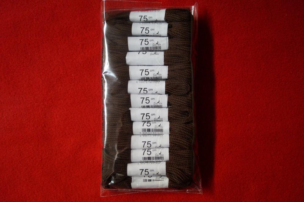 Sznurowadła 75 cm, płaskie, brązowe, op. 25 par /977/