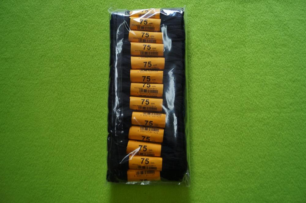 Sznurowadła 75 cm, płaskie, czarne, bawełniane op. 25 par