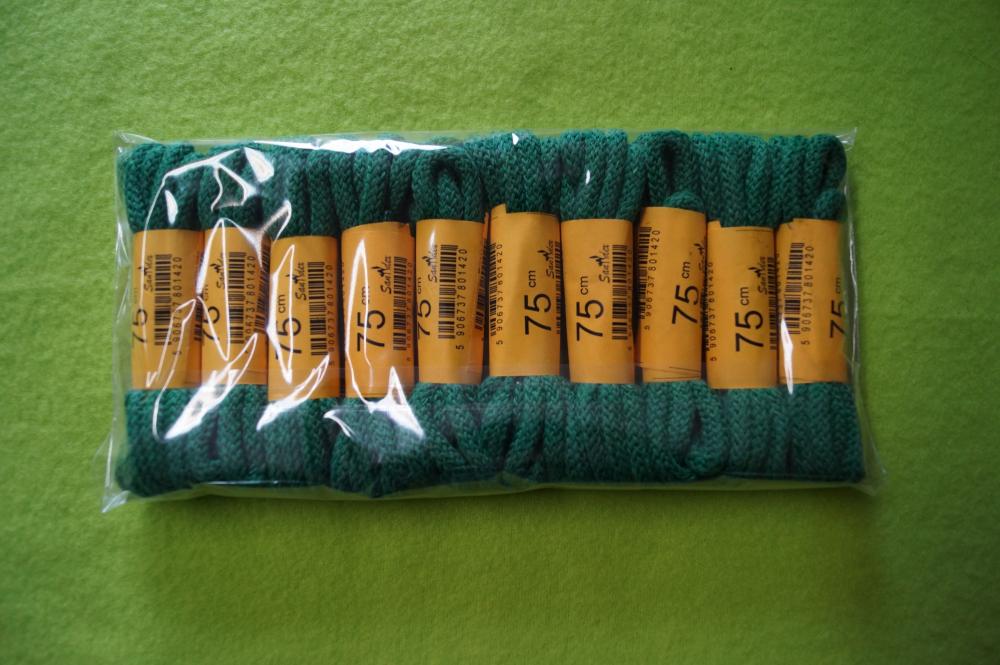 Sznurowadła 75 cm, zielone okrągłe op. 10 par