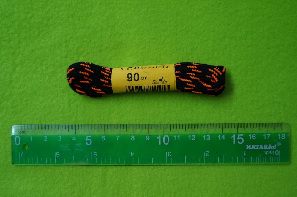Sznurowadła 90 cm okrągłe [ciapki] czarno-pomarańczowe, op. 10 par