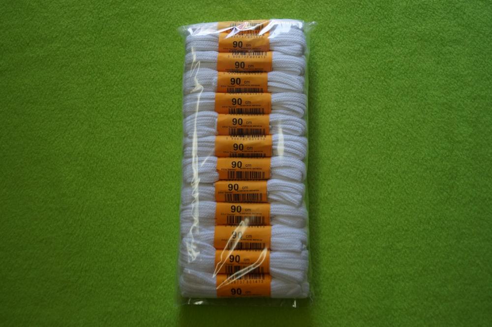 Sznurowadła 90 cm, płaskie, białe, bawełniane op. 25 par