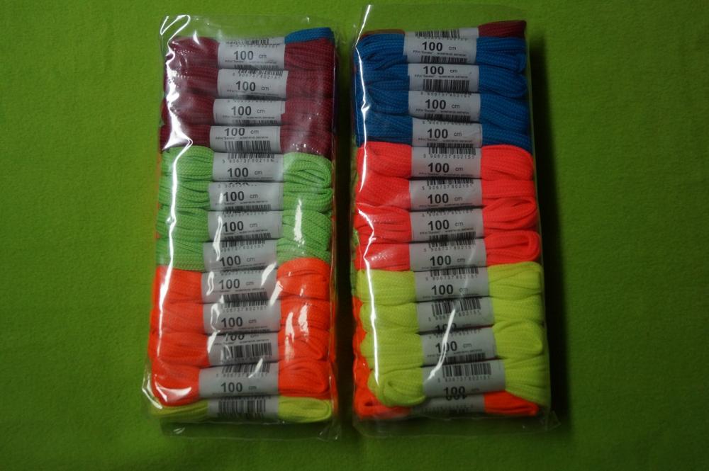 Modne fluorescencyjne sznurowadla w jaskrawych, energetyzujących barwach. Mix kolorów w opakowaniu. Sznurowadła dla dzieci, młodzieży i dorosłych w każdym wieku. Do butów sportowych i nie tylko.