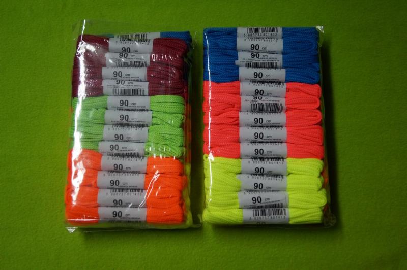 Modne fluorescencyjne sznurowadla w jaskrawych, energetyzujących barwach. Mix kolorów w opakowaniu. Sznurowadła dla dzieci, młodzieży i dorosłych w każdym wieku. Do butów sportowych i nie tylko.