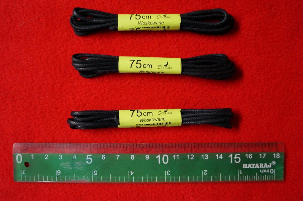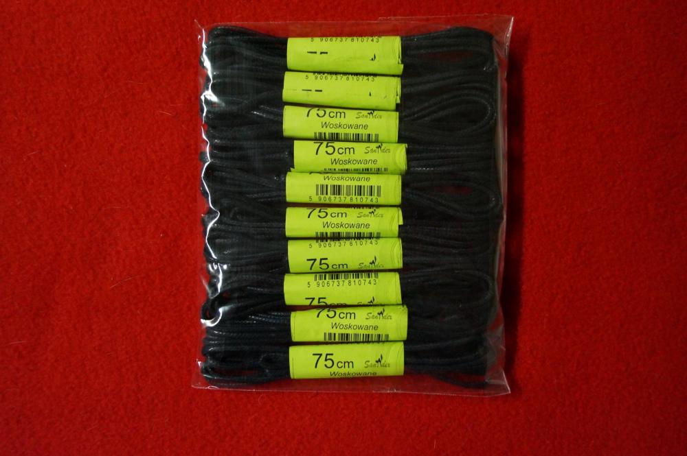 Sznurowadła woskowane, czarne,75 cm op. 10 par /1365/