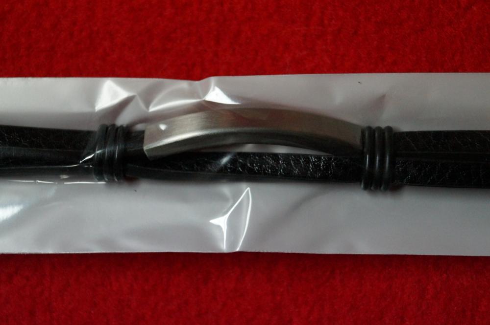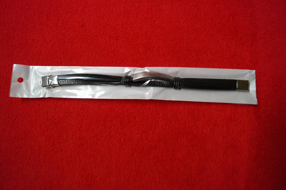 Bransoletka ozdobna skórzana . Modny wzór. Elementy metalowe wykonane ze stali chirurgicznei a pasek z naturalnej skóry