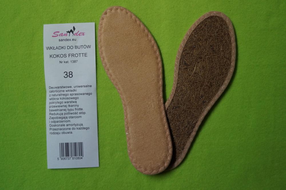 Całoroczne dwuwarstwowe wkładki do butów wykonane z naturalnego, sprasowanego włókna kokosowego pokrytego warstwą przewiewnej tkaniny bawełnianej typu frotte, która idealnie pochłania pot, transportując go w głąb wkładek. Włókno kokosowe dzięki swoim doskonałym właściwościom absorpcyjnym wyraźnie redukuje potliwość stóp, co z kolei zapobiega otarciom i odparzeniom, pozwalając zachować stopy w doskonałej kondycji. Wkładki doskonale na każdą pogodę, dzięki grubości ok. 5 mm, wkładki idealnie przylegają do stopy i dodatkowo amortyzują obciążenia.