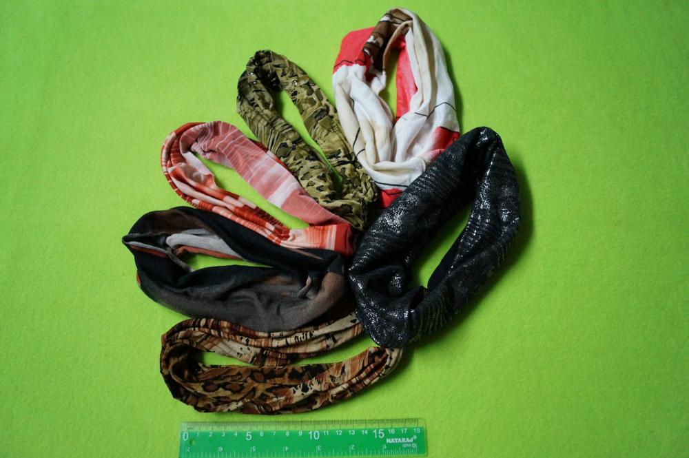 Opaska "magiczna", op. 6 szt. mix kolorów. Rewelacyjnie prosta opaska dająca wiele możliwości stylizacji. Może być noszona jako opaska, owijka do włosów, chustka na głowę, a także jako opaska na twarz (maska)